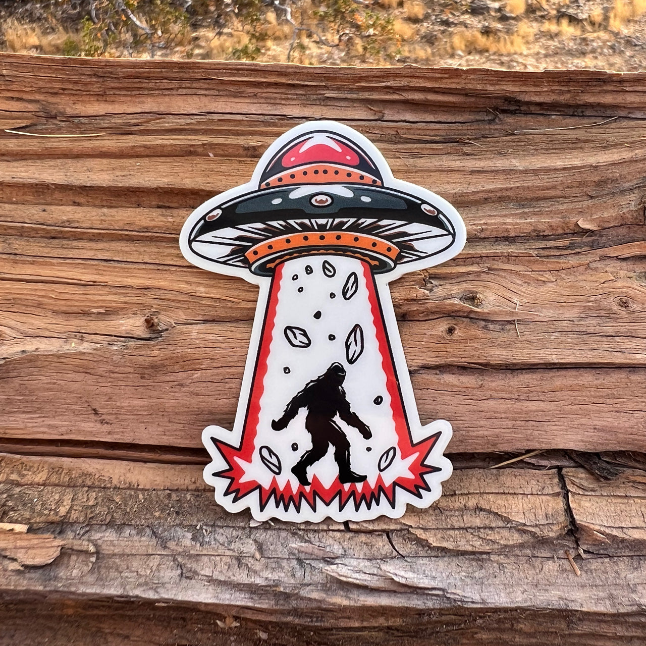 Sticker - Bigfoot Abduction UFO Glow-in-the-Dark