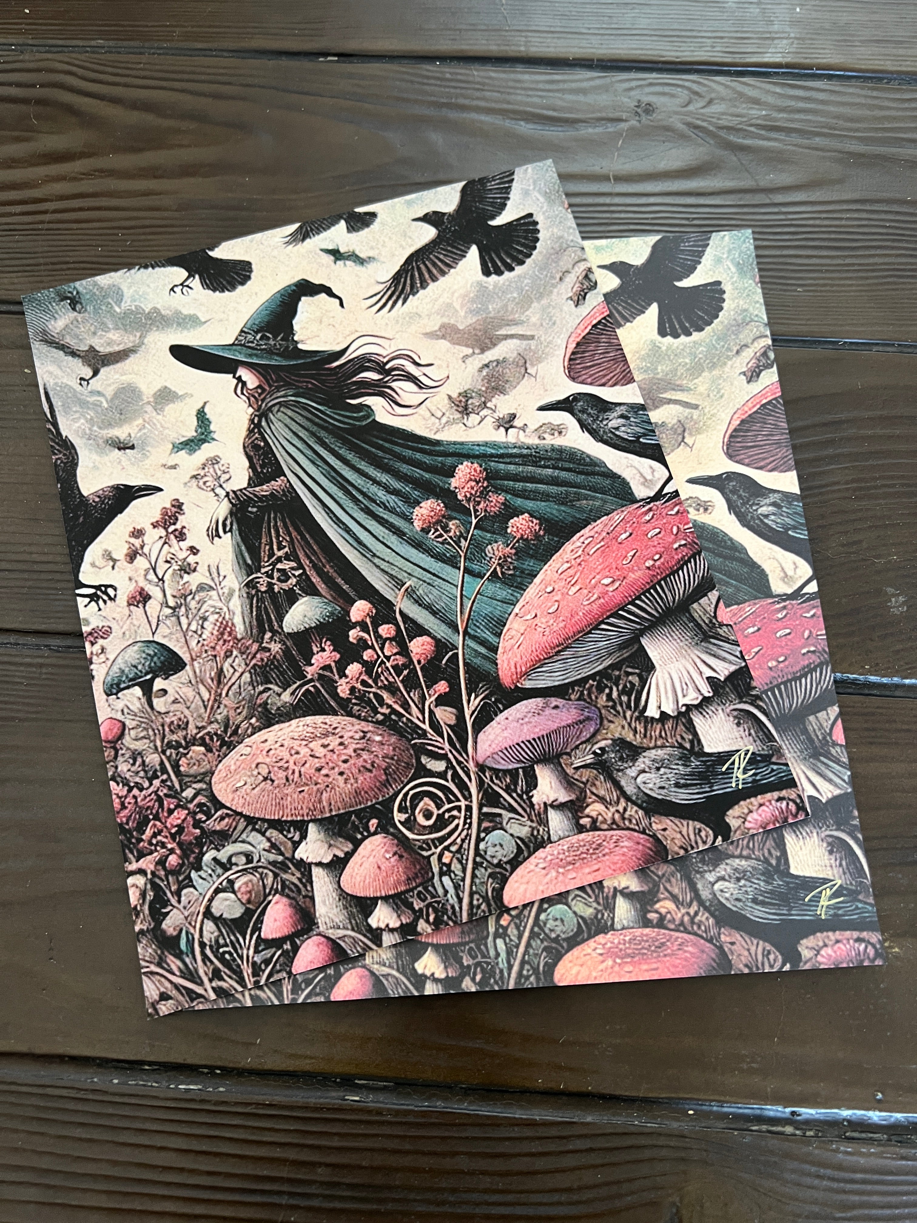 Witch, raven, mushrooms: Witch of the Mushroom Wood